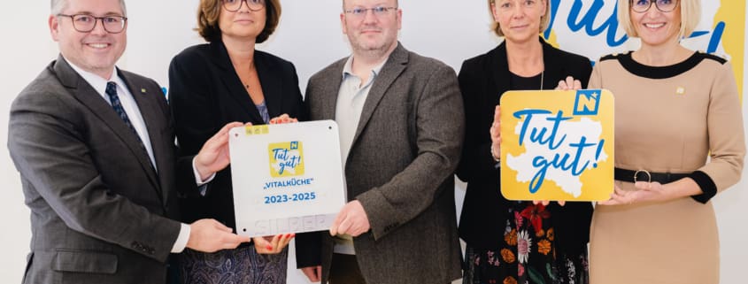 Im Rahmen der „Tut gut!“ – Regionalgala wurde die Vitalküchenzertifizierung in der Stufe Silber an Frau Dir. Claudia Liebl, unseren Buffetbetreiber „Mr. Buffet“ – Herrn Martin Jahn und die Gesunde Schule Beauftragte Mag. Martha Herb feierlich überreicht.