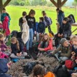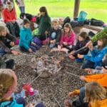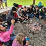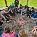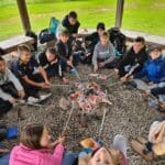 wir grillen Würstchen am Lagerfeuer immer mehr.
