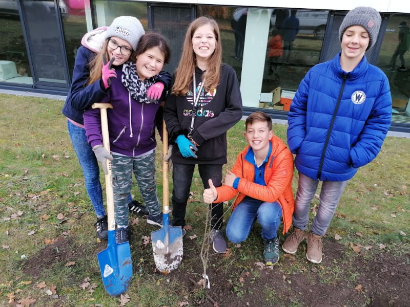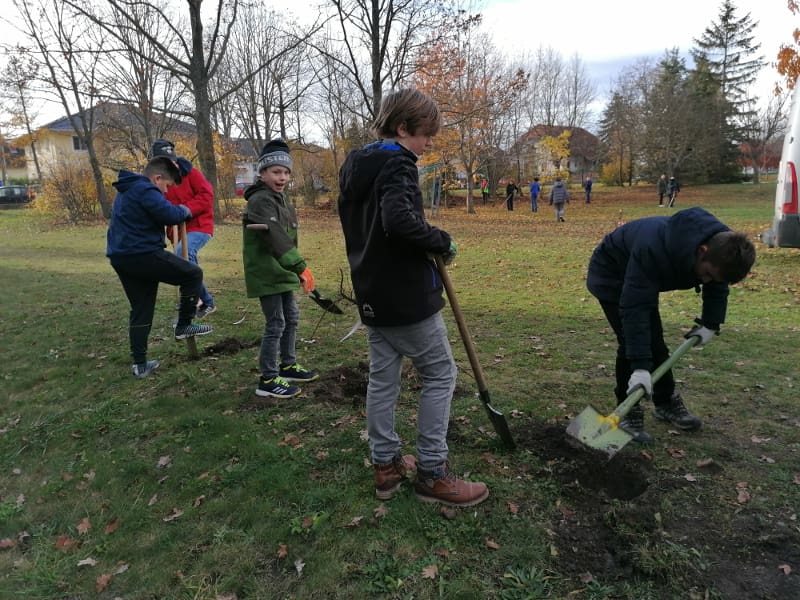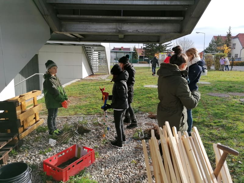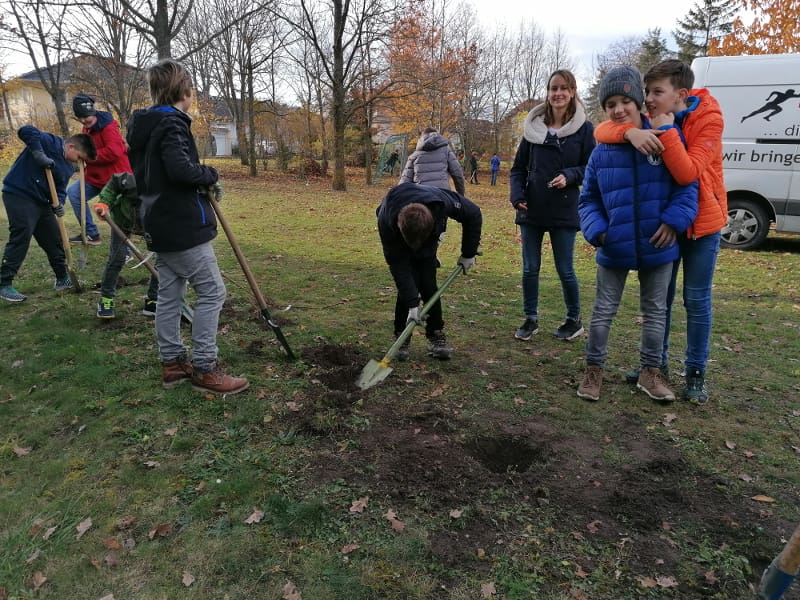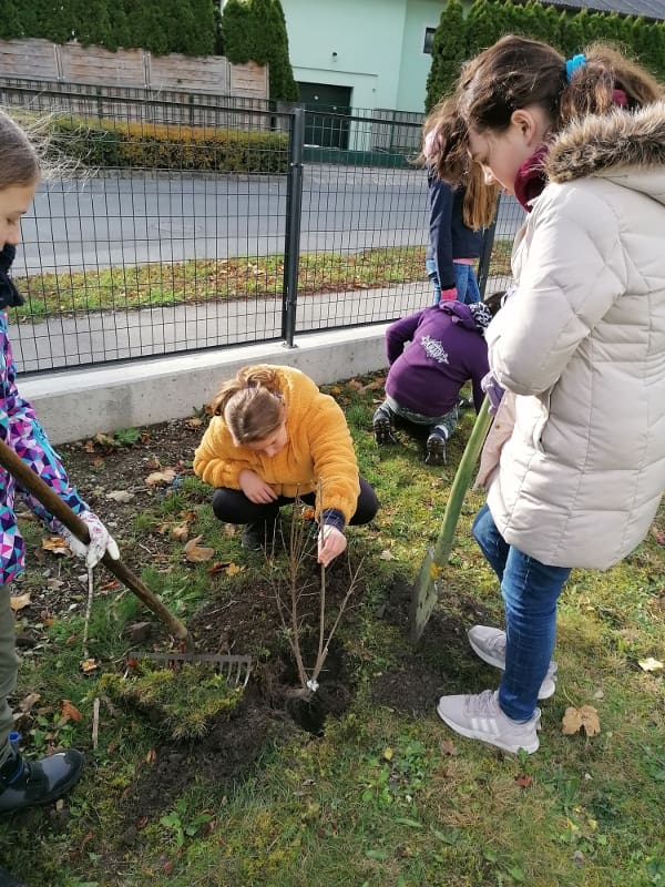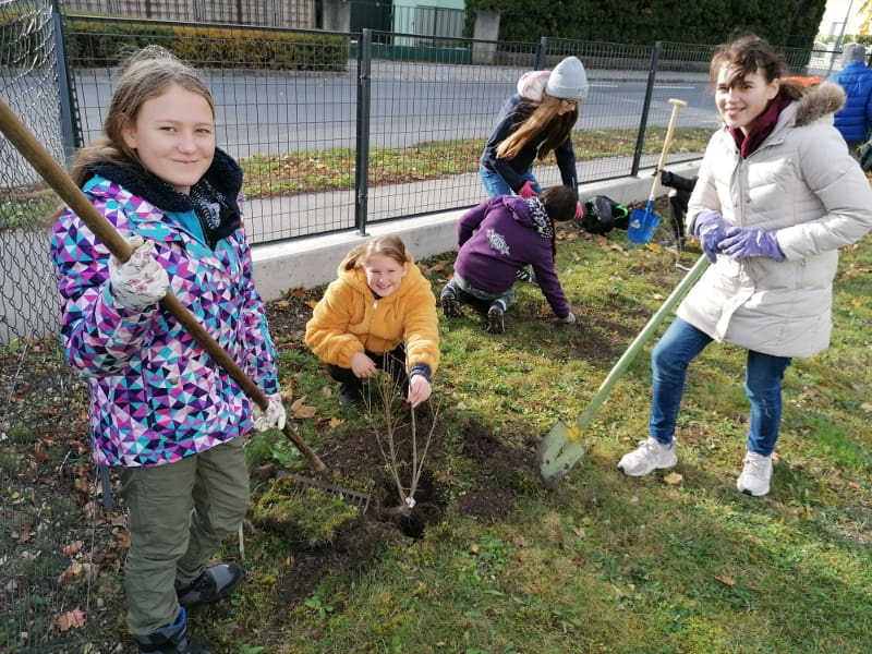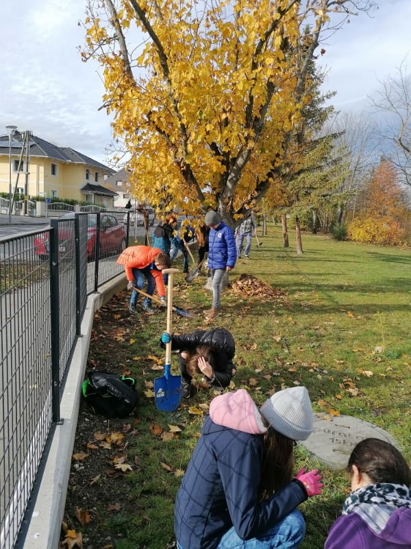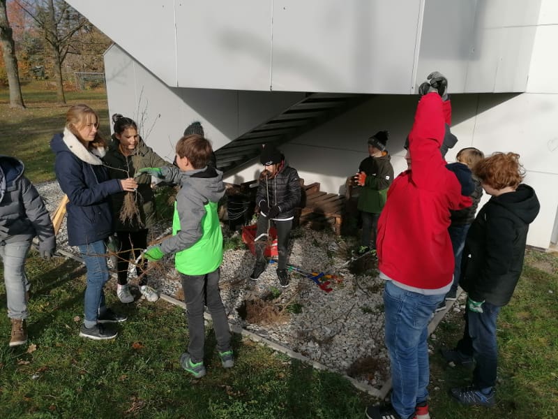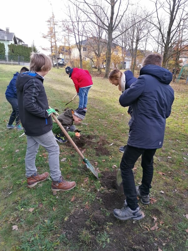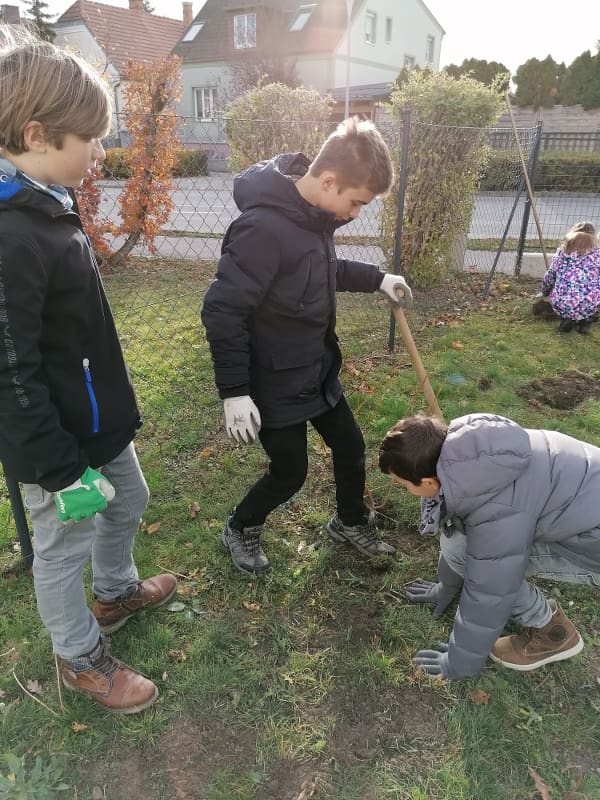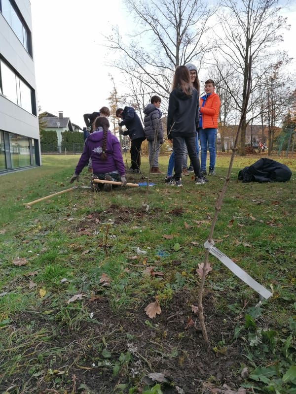 Im Zuge des Aktion „Bienensträucher“ der Stadtgemeinde Bad Vöslau stellte die Stadtgemeinde dem Gymnasium 40 Heckenstecklinge vom NÖ Heckentag zur Verfügung. Am 19.11.2019 wurden die Hecken von der 2E gemeinsam mit ihrem Ökologie-Lehrer Dominik Harant, ihrer Klassenvorständin und Biologielehrerin Magdalena Sammer und dem Schulwart Martin Ganneshofer gepflanzt. Auch das dafür benötigte Werkzeug wurde uns von der Stadtgemeinde geborgt. Am Zaun zum Gerichtsweg wurde Hecken für Bienen gepflanzt, im Schulgarten eine Naschhecke mit Himbeeren, Brombeeren, Holunder, Pfirsich und weiteren Beerensträuchern.