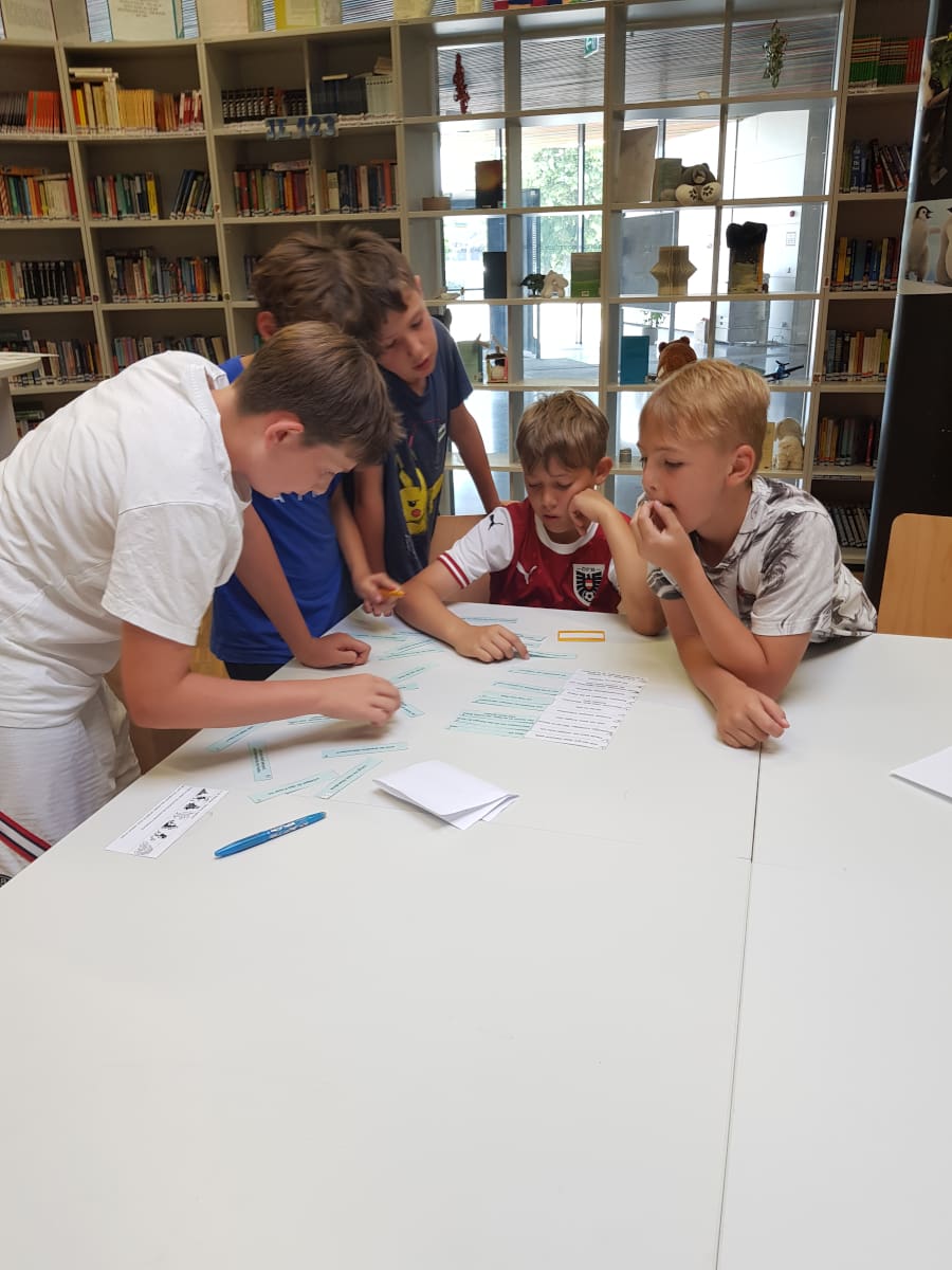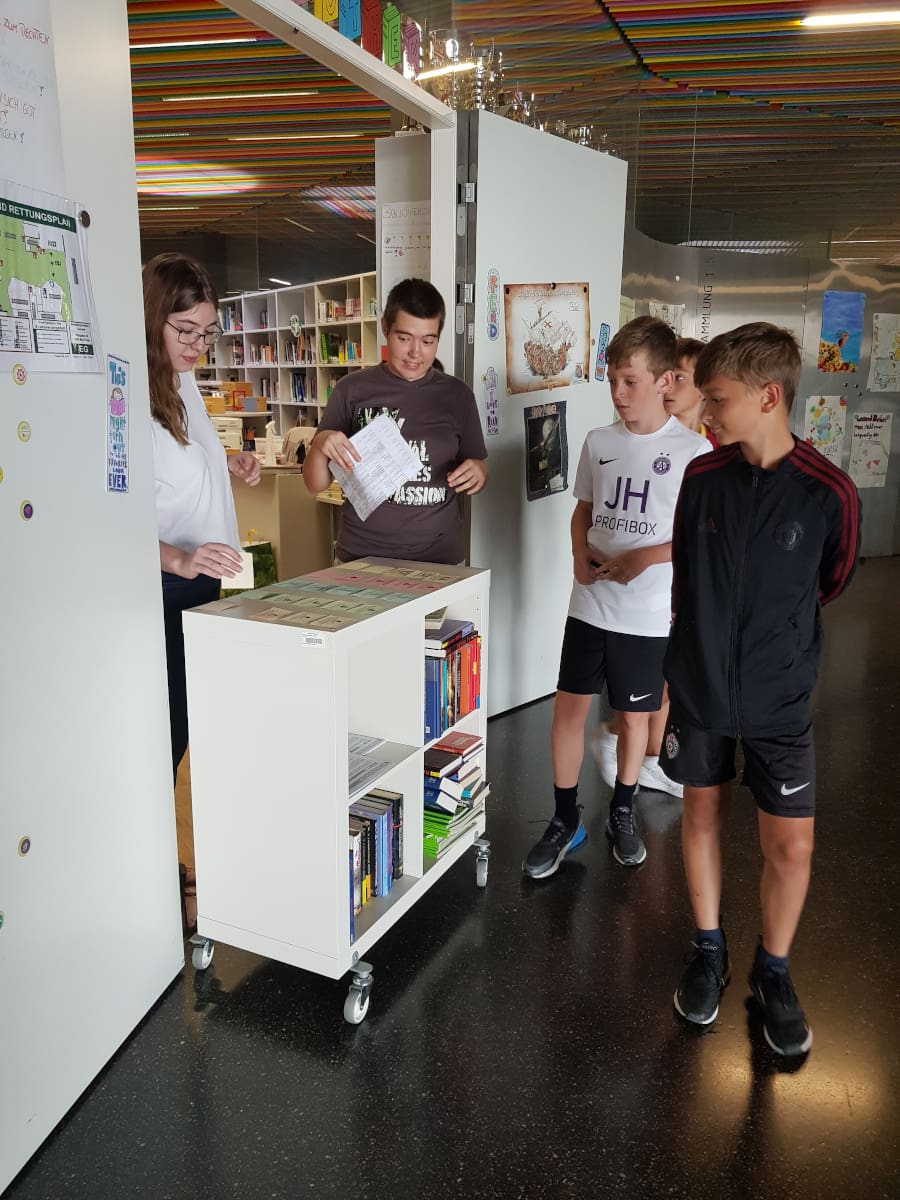In der vorletzten Schulwoche durften alle 1. Klassen noch einmal zwei spannende Stunden in der Schulbibliothek (und dem ganzen Schulgebäude) erleben.