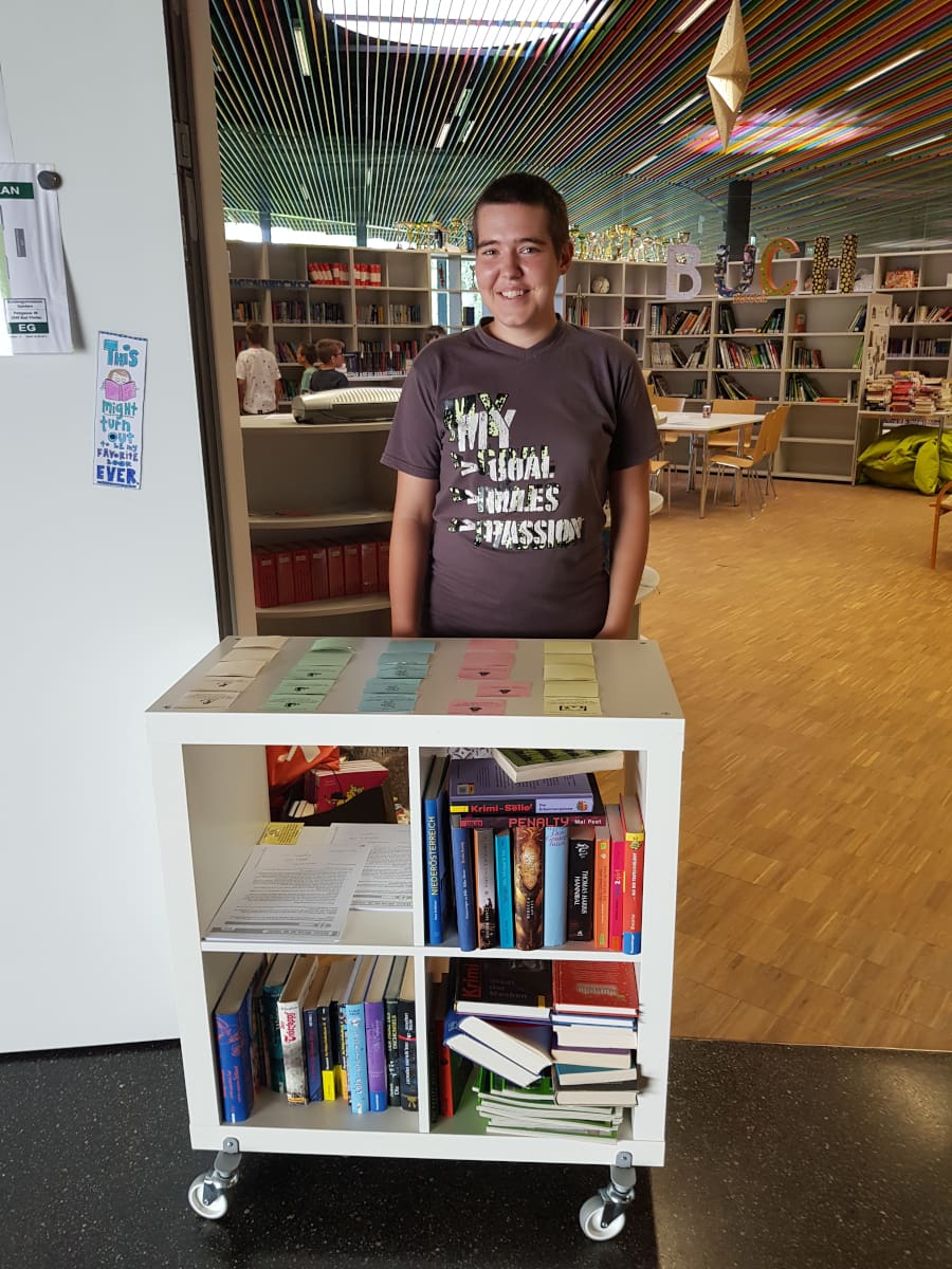 Tatkräftig unterstützt wurden die Schulbibliothekarinnen von unseren früherern Schülerbibliothekarinnen Marie und Jana, denen wir herzlich zur bestandenen Matura gratulieren.