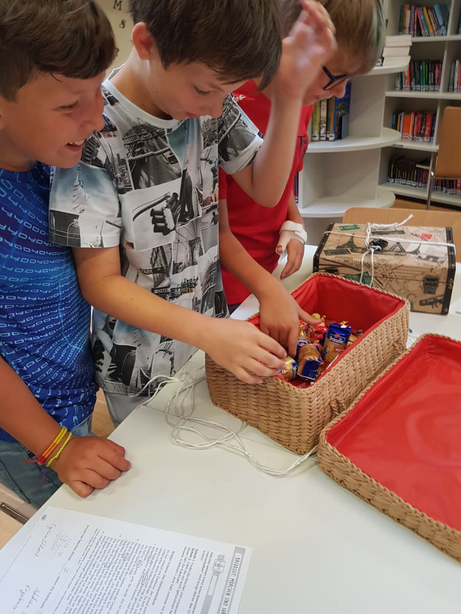 Bei einer Märchenrätselrallye versuchten sie, mit Hinweisen aus Büchern den Code für den Märchenkoffer zu finden, in dem die Hexe die zu Prinzenrollen verzauberten Prinzen und Prinzessinnen eingesperrt hatte. Mit viel Enthusiasmus schafften es die meisten Gruppen, das Rätsel zu lösen. Da aber alle selbst erfundenen Zaubersprüche es nicht zustande brachten, dass aus den Prinzenrollen wieder Prinzen wurden, wurden letztlich die Prinzenrollen von den erfolgreichen SchülerInnen als Belohnung aufgegessen.