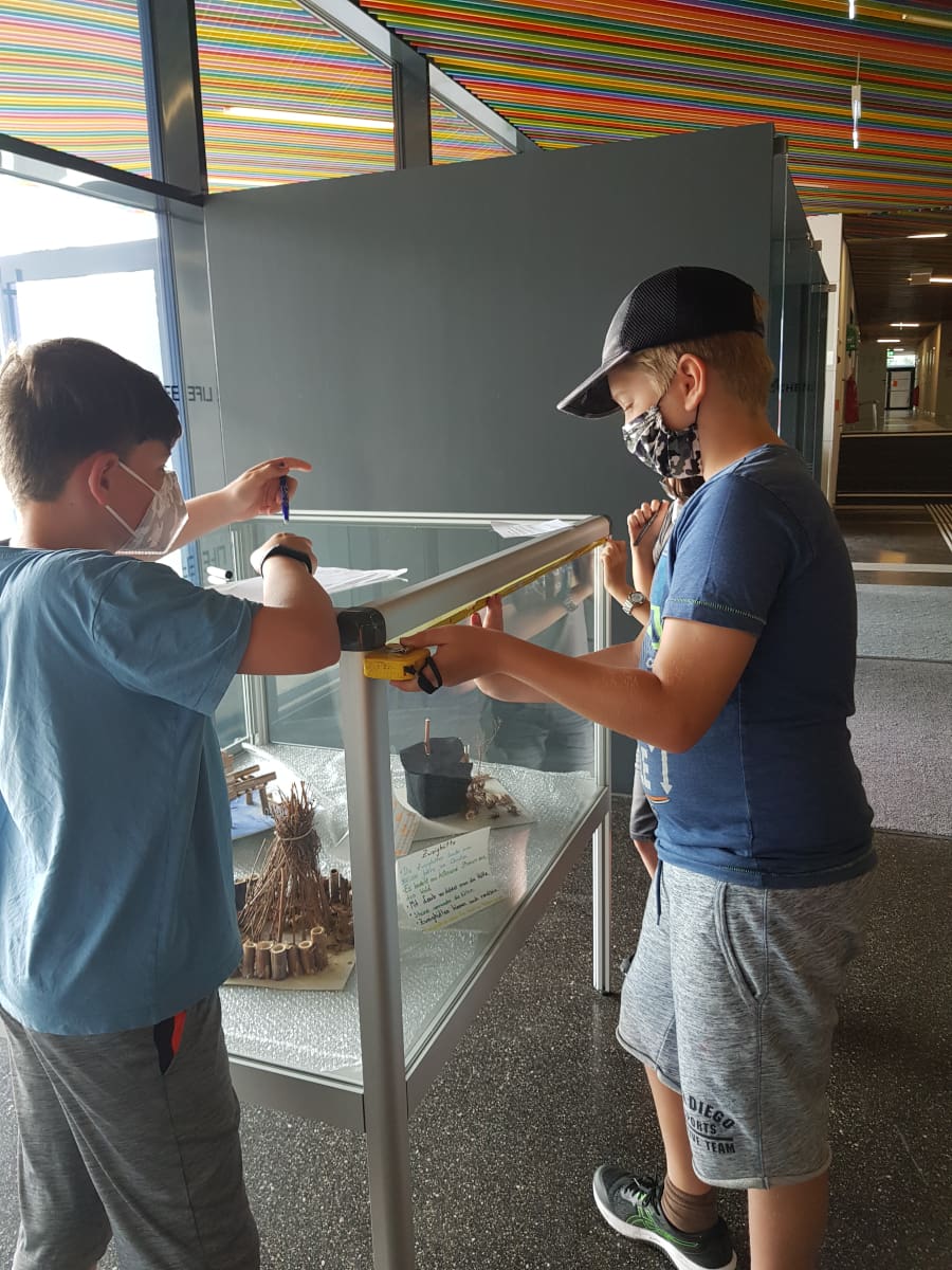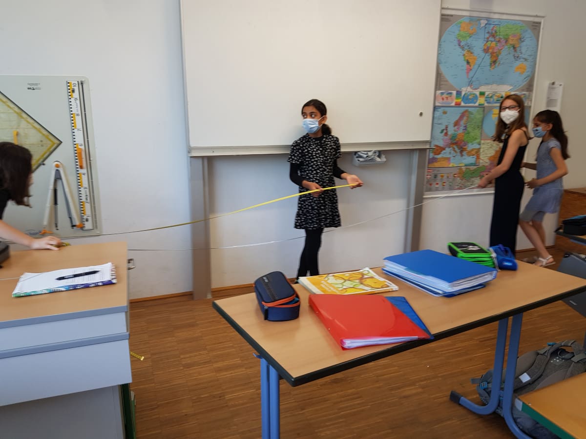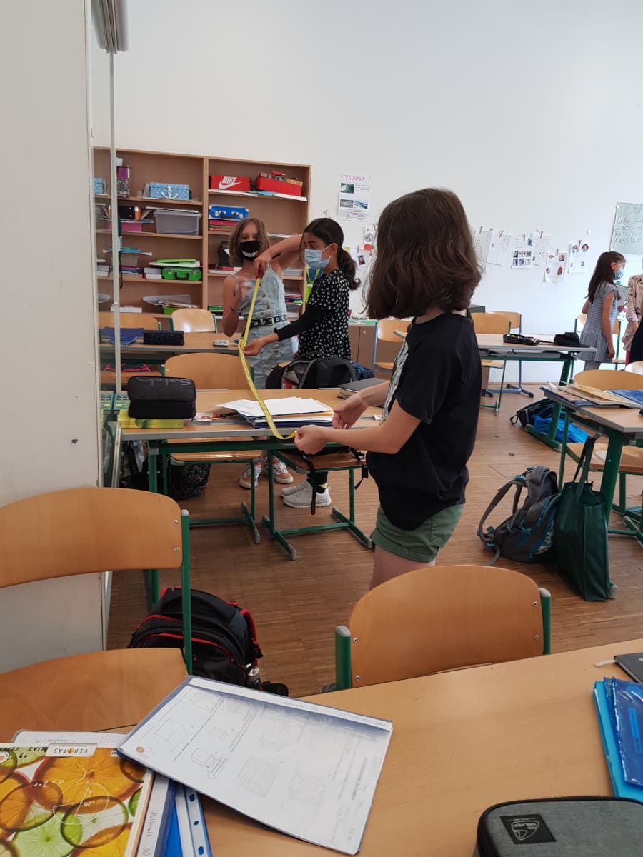Zum Thema „Volumen und Oberfläche von Würfel und Quader“ vermaßen die Schülerinnen und Schüler der 1D verschiedene quaderförmige Objekte und Räume im Schulgebäude.