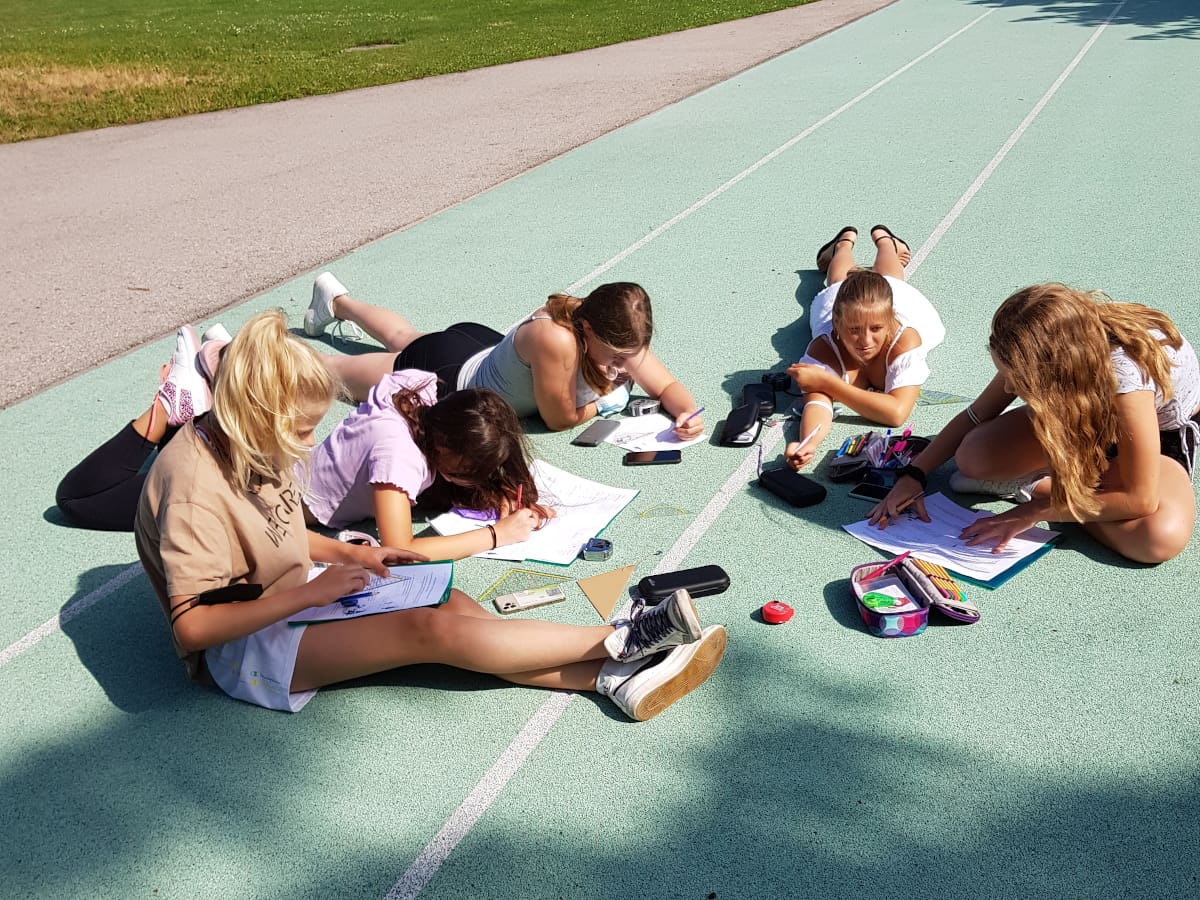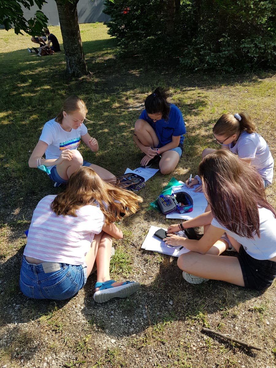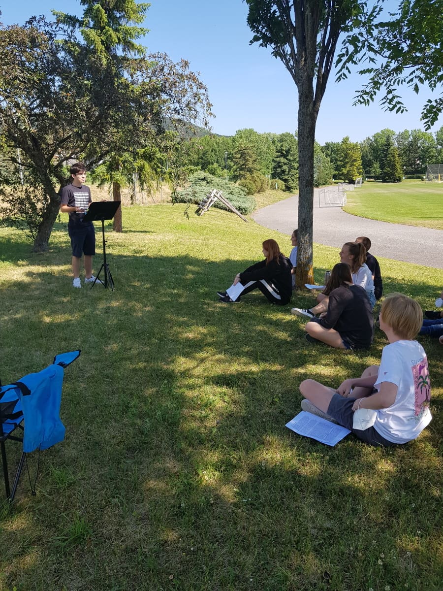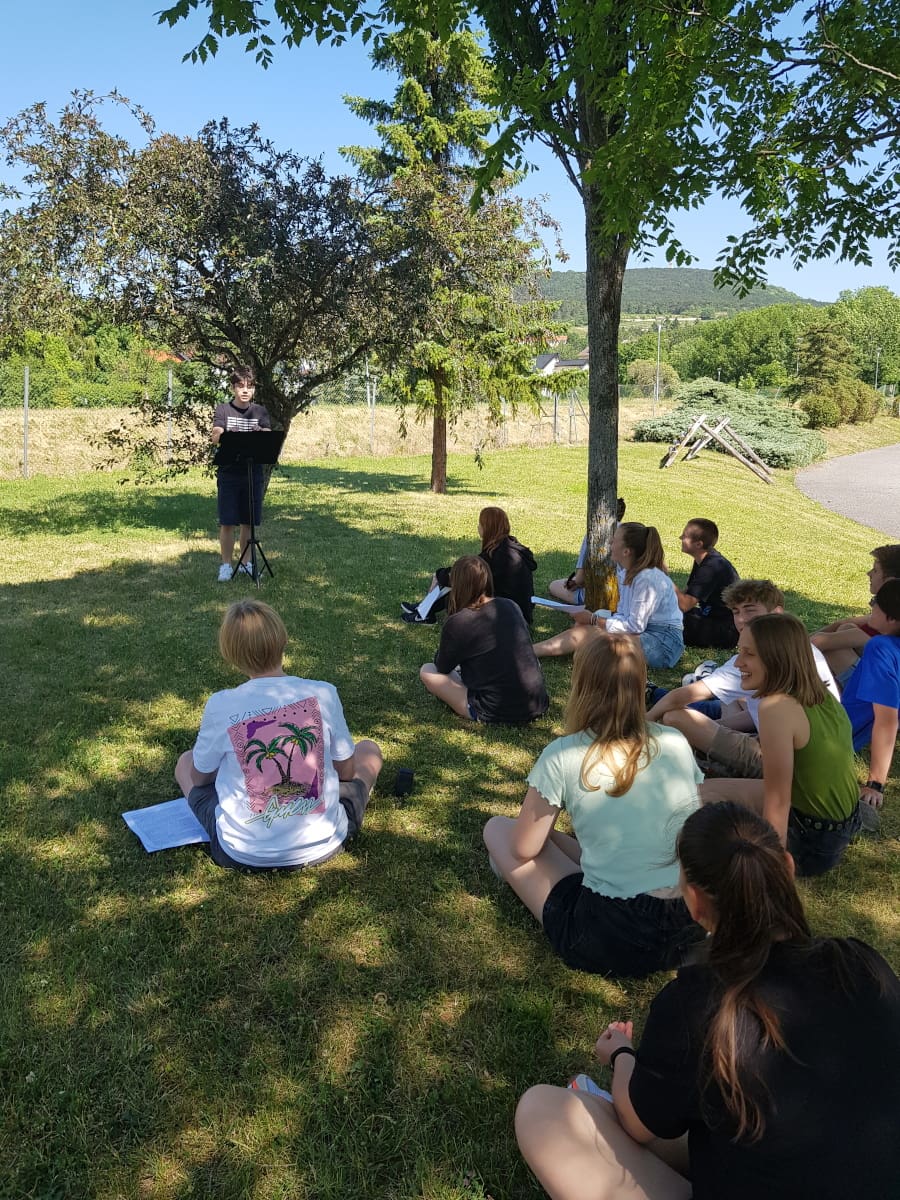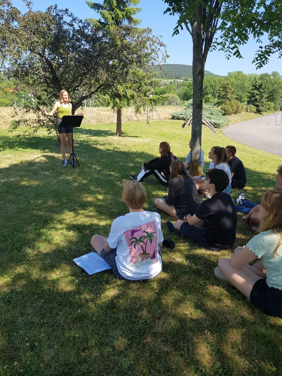 Das schöne Wetter im Juni bot sich dafür an, den strengen Coronaregeln im Gebäude zu entgehen und den Unterricht ins Freie zu verlegen.