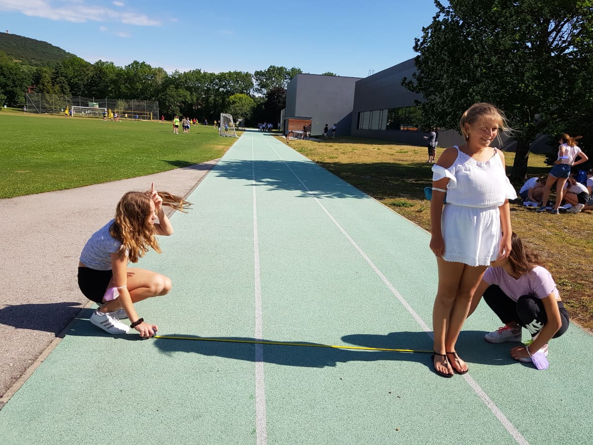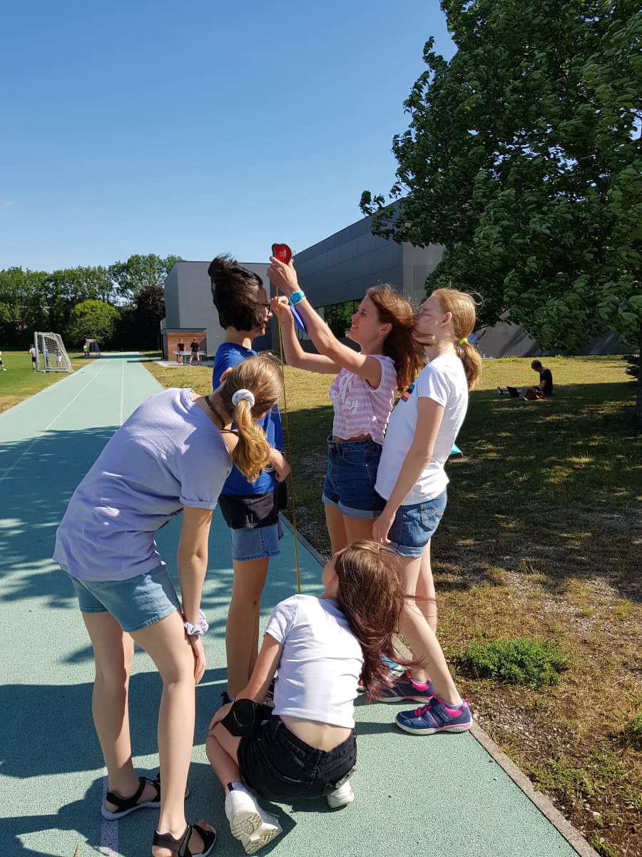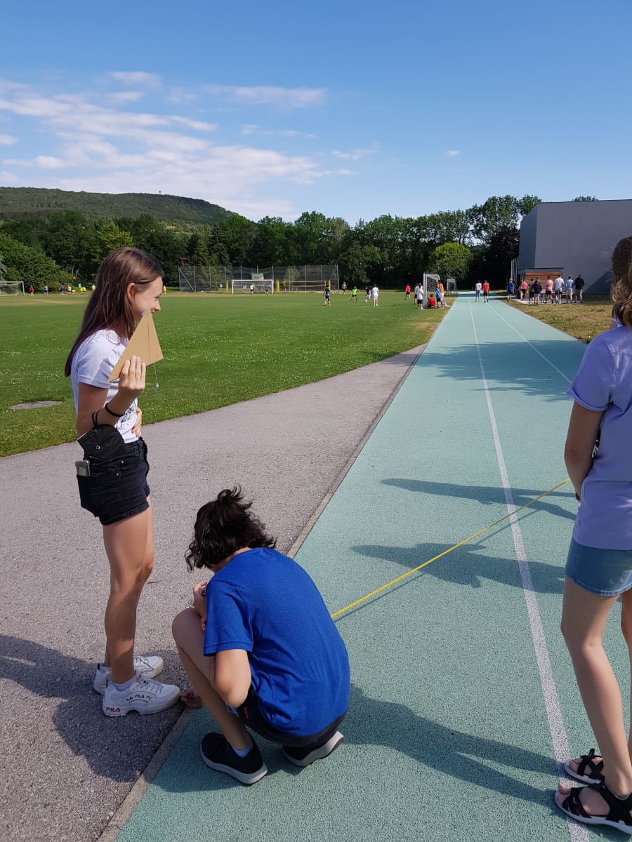Die Klassen 3ARS und 3EW versuchten im Mathematikunterricht, die Höhe von Bäumen im Schulgarten mit Hilfe des Strahlensatzes zu bestimmen: